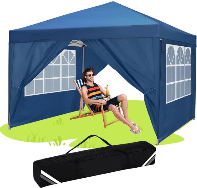 Pavilon, vízálló lombkorona, levehető oldalfalak, kék