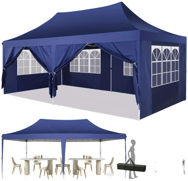 Sötétkék Pop-Up Pavilon: Vízálló védelem és állítható kényelem ⛱️ Ez a sötétkék pop-up pavilon tökéletes választás szabadtéri rendezvényekhez, legyen szó kerti partikról, családi összejövetelekről vagy akár piaci árusításról. A vízálló lombkorona és az állítható magasság garantálja a kényelmet és a védelmet minden időjárási körülmény között. Főbb jellemzők:Vízálló lombkorona: Eső esetén is szárazon tartja Önt és vendégeit. ☔ Állítható magasság: Könnyedén beállíthatja a kívánt magasságot a különböző igényekhez. Robusztus keret: A szélálló kialakítás stabilitást biztosít még szeles időben is. ? Személyre szabható oldalfalak: A sokoldalú falkonfigurációkkal az időjáráshoz és az esemény jellegéhez igazíthatja a pavilont. Könnyű felállítás: A pop-up mechanizmusnak köszönhetően pillanatok alatt felállítható és összecsukható. ⏱️ Élvezze a szabadtéri rendezvényeket gondtalanul ezzel a praktikus és stílusos pavilonnal!