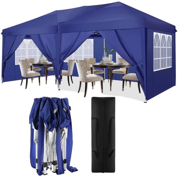 Vízálló Pavilon Sátor - 3x6 méter - Tökéletes Kültéri Rendezvényekhez! ☀️ Ez a strapabíró, vízálló pavilon sátor ideális választás bármilyen szabadtéri eseményhez, legyen szó kerti partiról, esküvőről vagy családi összejövetelről. A 3x6 méteres méret elegendő helyet biztosít vendégeid számára, miközben az állítható magasság lehetővé teszi, hogy a sátort az igényeidhez igazítsd. Főbb Jellemzők: ?️ Vízálló Anyag: A 210D Oxford kendő ezüst bevonattal védelmet nyújt az eső ellen. ?️ Egyszerű Beállítás: Szerszámok nélkül, gyorsan felállítható. ? Állítható Magasság: Több magassági fokozat a személyre szabott beállításokhoz. ? Stabil és Biztonságos: Lábpárnákkal és kötelekkel rögzíthető a szélben is. ? Opcionális Oldalfalak: Levehető oldalfalak a még nagyobb védelemért és intimitásért. Műszaki Adatok:Jellemző ÉrtékAnyag 210D Oxford kendő ezüst bevonattalMéret 3x6 méter (10x20 láb)Súly kb. 21 kg (46 lbs)Keret Fémkeret rozsdamentes bevonattalVízállóság 1000 PaSzín SötétkékSokoldalú Felhasználás: ? Partik és Rendezvények: Ideális helyszín szabadtéri összejövetelekhez. ? Esküvők: Elegáns és praktikus megoldás a vendégek védelmére. ? Kerti Összejövetelek: Kényelmes árnyékot biztosít a napsütéses napokon. Élvezd a szabadtéri eseményeket gondtalanul ezzel a praktikus és stílusos pavilon sátorral! ?