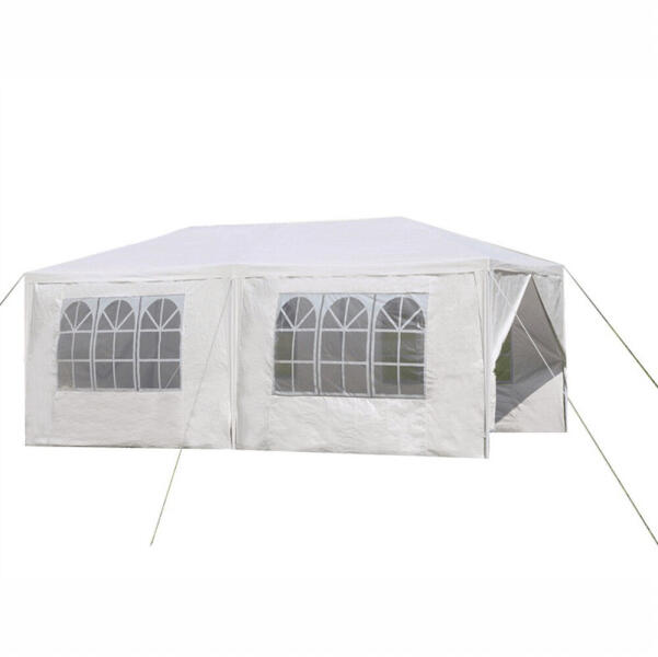 TEKNO TYP 2 Fehér Kerti Partisátor - 3x6 méter ☀️ A TEKNO TYP 2 kerti partisátor tökéletes választás szabadtéri rendezvényekhez, legyen szó családi összejövetelről, baráti grillezésről vagy kerti partiról. Védelmet nyújt a napsugarak és a könnyű eső ellen, így az időjárás nem fogja befolyásolni a szórakozást. Főbb jellemzők:Méret: 3 x 6 méter - Bőséges hely a vendégeknek és a felszerelésnek. Anyag: 100% polietilén / acél - Tartós és megbízható szerkezet. Szín: Fehér - Elegáns megjelenés, amely bármilyen környezetbe illeszkedik. Vízálló: Enyhe esőben is szárazon tart. Oldalfalak: 4 oldalsó fal, melyből 3 átlátszó ablakkal rendelkezik - Lehetőség a teljes vagy részleges lezárásra az időjárástól függően. Bejárat: Az egyik fal cipzárral van felszerelve a könnyű bejutás érdekében. UV-védelem: Védelmet nyújt a káros napsugarak ellen. Levehető oldalfalak: Könnyen eltávolítható vagy felszerelhető az igényeknek megfelelően. Méretek:Méret (SzéxMéxMa) 300 x 600 x 245 cmFontos: A sátrat szétszerelve szállítjuk. Ne tegye ki a sátrat rossz időjárásnak és erős esőnek. A sátrat nem ajánlott használni a téli hónapokban, amikor nehéz hó veszélyeztetheti.