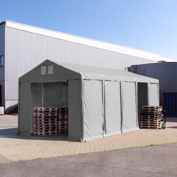 TOOLPORT Ipari sátor, 4x10m, PVC ponyva, szürke, padlókerettel, statikai megerősítés nélkül Raktár sátor - (79799)