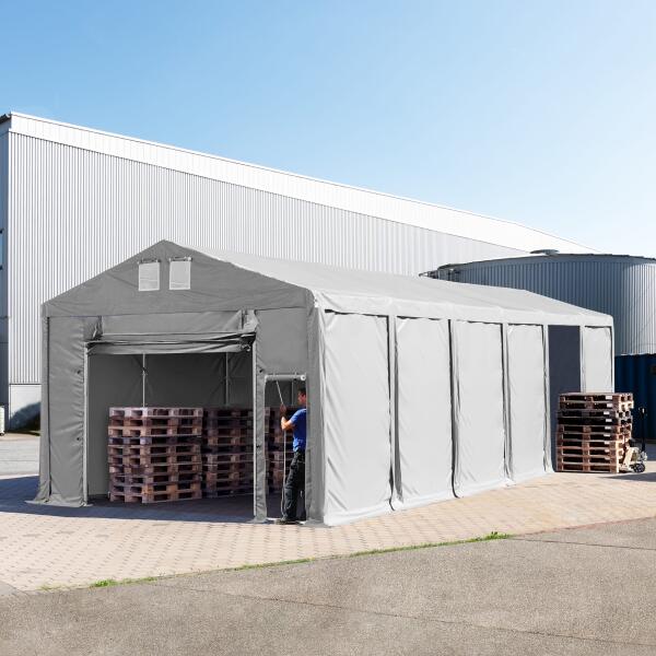 TOOLPORT Ipari sátor, 6x12m, PVC ponyva, szürke, padlókerettel, statikai megerősítéssel (föld alap) Raktár sátor - (93797)