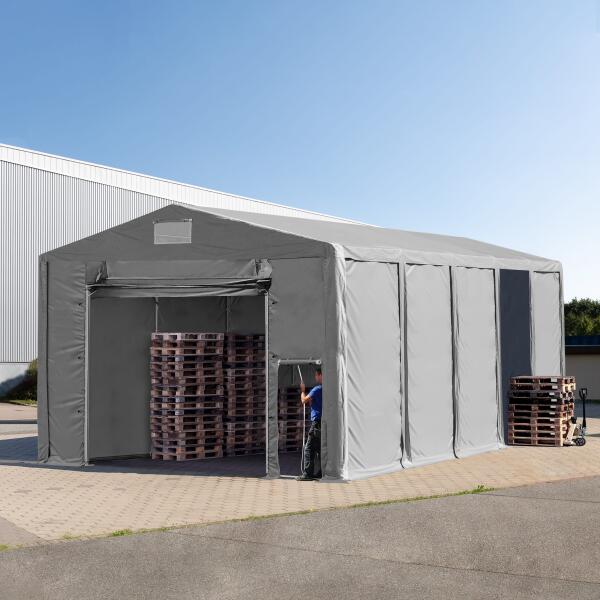 TOOLPORT Ipari sátor, 8x10m, PVC ponyva, szürke, padlókerettel, statikai megerősítéssel (föld alap) Raktár sátor - (93816)
