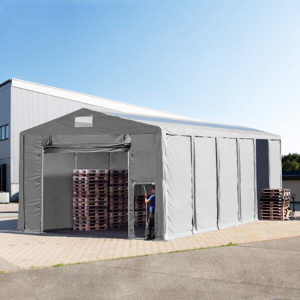TOOLPORT Ipari sátor, 8x12m, PVC ponyva, szürke, padlókerettel, statikai megerősítés nélkül Raktár sátor - (79849)