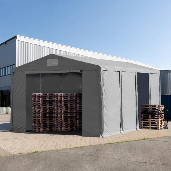 TOOLPORT Ipari sátor, 8x8m, PVC ponyva, szürke, padlókerettel, statikai megerősítéssel (föld alap) Raktár sátor - (93831)