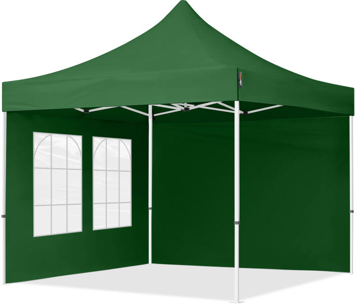 TOOLPORT Összecsukható pavilon, acél, 3x3m, 2 oldalpanellel együtt, sötét zöld Pavilon sátor, Piaci sátor, Pop up sátor - (59038)