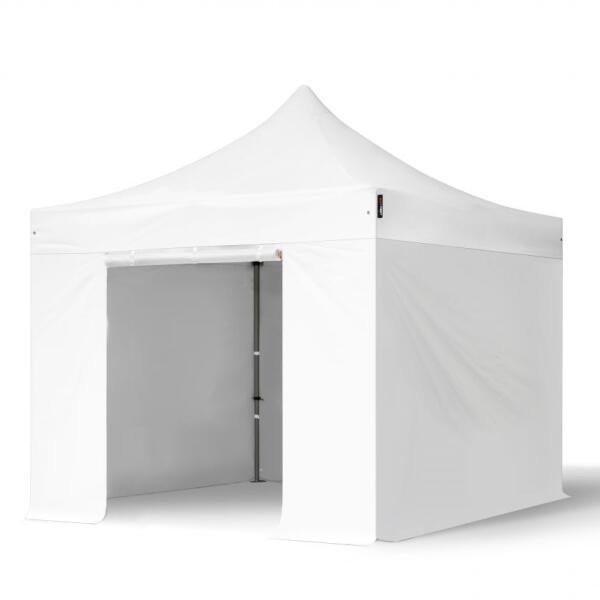 TOOLPORT Összecsukható pavilon, acél, 3x3m, 4 oldalpanellel együtt, fehér Pavilon sátor, Piaci sátor, Pop up sátor - (600113)