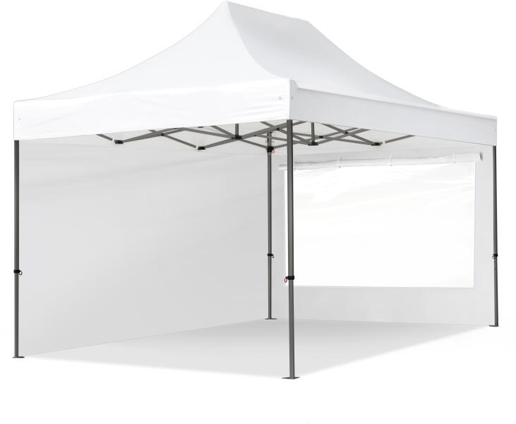 TOOLPORT Összecsukható pavilon, acél, 3x4, 5m, 2 oldalpanellel együtt, fehér Pavilon sátor, Piaci sátor, Pop up sátor - (600060)