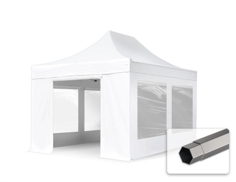 TOOLPORT Összecsukható pavilon, acél, 3x4, 5m, 4 oldalpanellel együtt, fehér Pavilon sátor, Piaci sátor, Pop up sátor - (600118)
