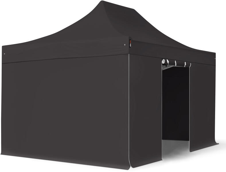 TOOLPORT Összecsukható pavilon, acél, 3x4, 5m, 4 oldalpanellel együtt, fekete Pavilon sátor, Piaci sátor, Pop up sátor - (600042)