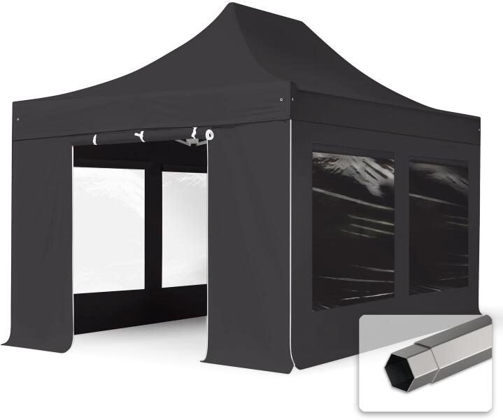 TOOLPORT Összecsukható pavilon, acél, 3x4, 5m, 4 oldalpanellel együtt, fekete Pavilon sátor, Piaci sátor, Pop up sátor - (600114)