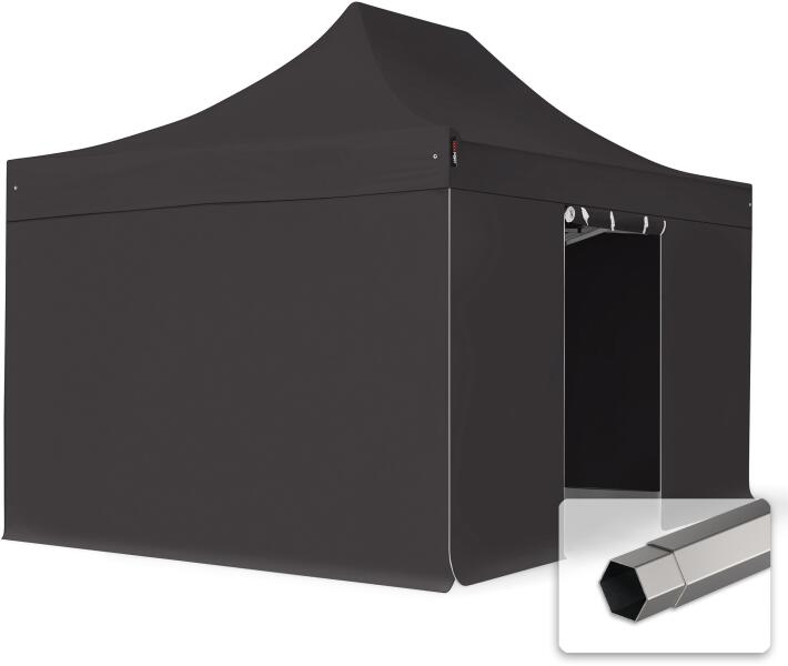 TOOLPORT Összecsukható pavilon, acél, 3x4, 5m, 4 oldalpanellel együtt, fekete Pavilon sátor, Piaci sátor, Pop up sátor - (600115)