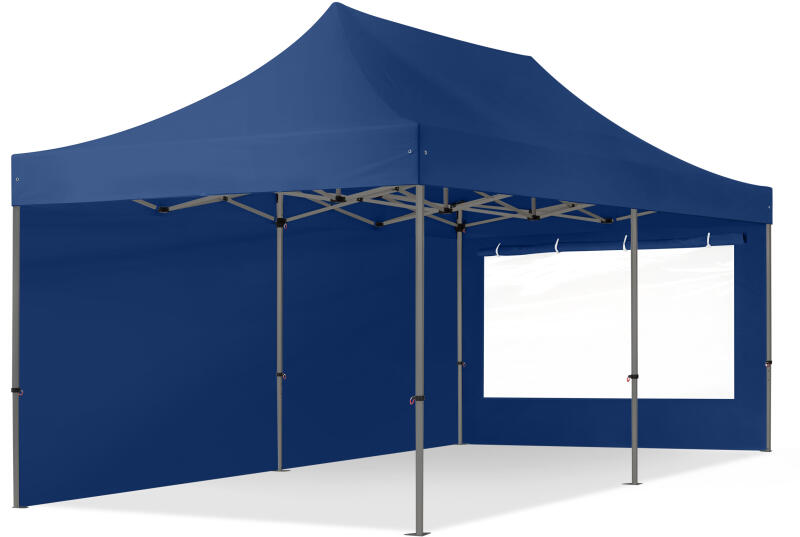 TOOLPORT Összecsukható pavilon, acél, 3x6m, 2 oldalpanellel együtt, sötétkék Pavilon sátor, Piaci sátor, Pop up sátor - (600068)
