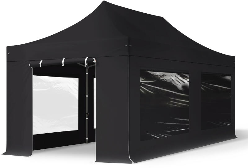 TOOLPORT Összecsukható pavilon, acél, 3x6m, 4 oldalpanellel együtt, fekete Pavilon sátor, Piaci sátor, Pop up sátor - (600066)