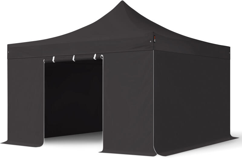TOOLPORT Összecsukható pavilon, acél, 4x4m, 4 oldalpanellel együtt, fekete Pavilon sátor, Piaci sátor, Pop up sátor - (600088)