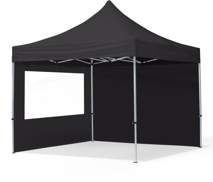 TOOLPORT Összecsukható pavilon, Aluminium, 3x3m, 2 oldalpanellel együtt, fekete Pavilon sátor, Piaci sátor, Pop up sátor - (59015)