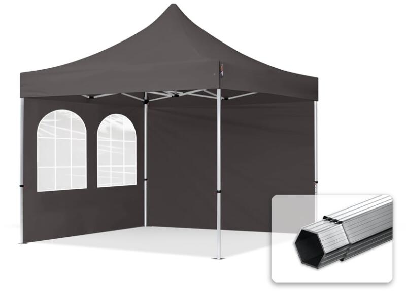 TOOLPORT Összecsukható pavilon, Aluminium, 3x3m, 2 oldalpanellel együtt, sötétszürke Pavilon sátor, Piaci sátor, Pop up sátor - (600168)
