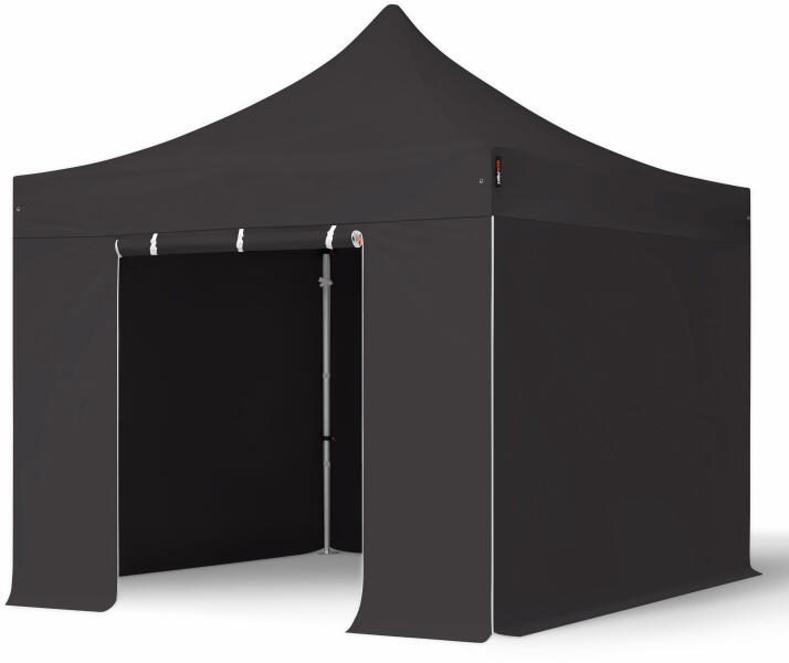 TOOLPORT Összecsukható pavilon, Aluminium, 3x3m, 4 oldalpanellel együtt, fekete Pavilon sátor, Piaci sátor, Pop up sátor - (59136)
