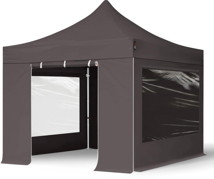 TOOLPORT Összecsukható pavilon, Aluminium, 3x3m, 4 oldalpanellel együtt, sötétszürke Pavilon sátor, Piaci sátor, Pop up sátor - (600150)