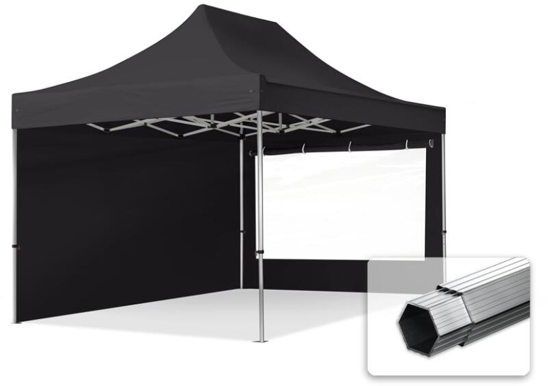 TOOLPORT Összecsukható pavilon, Aluminium, 3x4, 5m, 2 oldalpanellel együtt, fekete Pavilon sátor, Piaci sátor, Pop up sátor - (600213)