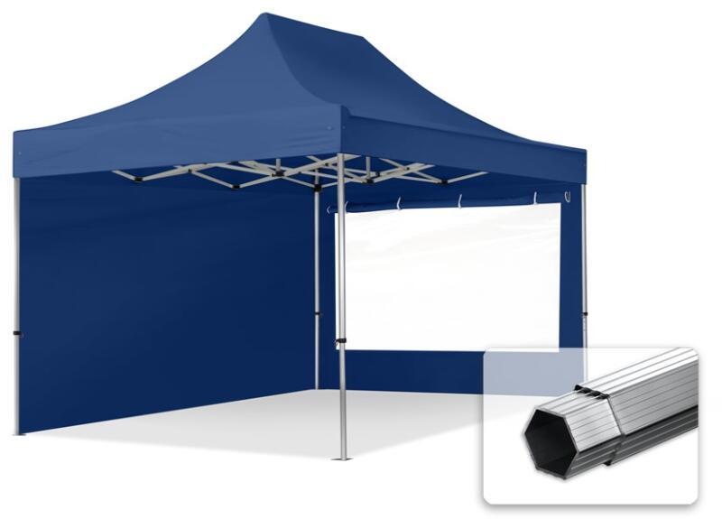 TOOLPORT Összecsukható pavilon, Aluminium, 3x4, 5m, 2 oldalpanellel együtt, sötétkék Pavilon sátor, Piaci sátor, Pop up sátor - (600209)