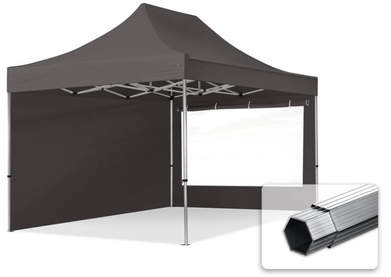 TOOLPORT Összecsukható pavilon, Aluminium, 3x4, 5m, 2 oldalpanellel együtt, sötétszürke Pavilon sátor, Piaci sátor, Pop up sátor - (600210)
