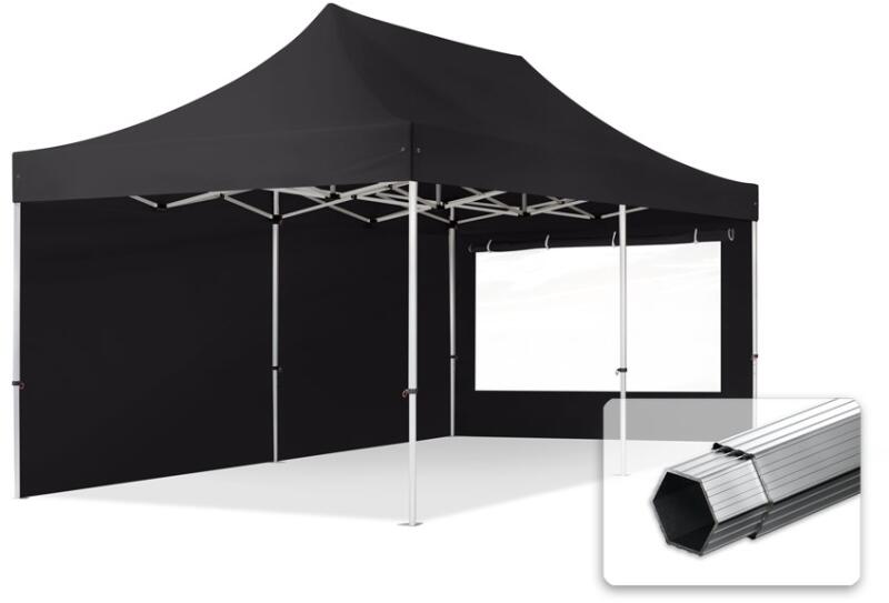 TOOLPORT Összecsukható pavilon, Aluminium, 3x6m, 2 oldalpanellel együtt, fekete Pavilon sátor, Piaci sátor, Pop up sátor - (600236)