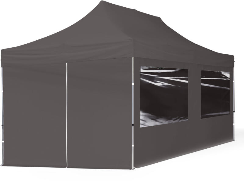 TOOLPORT Összecsukható pavilon, Aluminium, 3x6m, 4 oldalpanellel együtt, sötétszürke Pavilon sátor, Piaci sátor, Pop up sátor - (59025)
