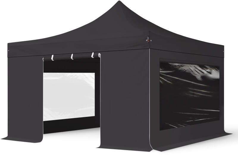 TOOLPORT Összecsukható pavilon, Aluminium, 4x4m, 4 oldalpanellel együtt, fekete Pavilon sátor, Piaci sátor, Pop up sátor - (600177)