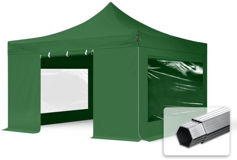 TOOLPORT Összecsukható pavilon, Aluminium, 4x4m, 4 oldalpanellel együtt, sötét zöld Pavilon sátor, Piaci sátor, Pop up sátor - (600187)