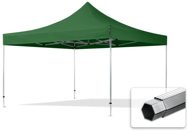 TOOLPORT Összecsukható pavilon, Aluminium, 4x4m, oldalpanelek nélkül, sötét zöld Pavilon sátor, Piaci sátor, Pop up sátor - (600191)