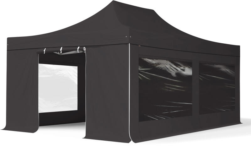 TOOLPORT Összecsukható pavilon, Aluminium, 4x6m, 4 oldalpanellel együtt, fekete Pavilon sátor, Piaci sátor, Pop up sátor - (59067)