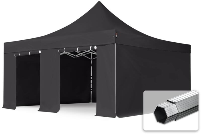 TOOLPORT Összecsukható pavilon, Aluminium, 5x5m, 4 oldalpanellel együtt, fekete Pavilon sátor, Piaci sátor, Pop up sátor - (59059)