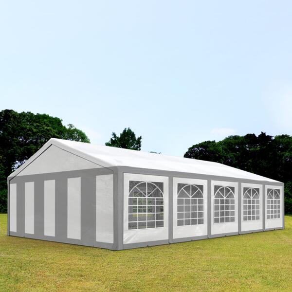 TOOLPORT Parti sátor, 5x10m, PE ponyva, szürke-fehér Sörsátor, Rendezvény sátor - (91124)