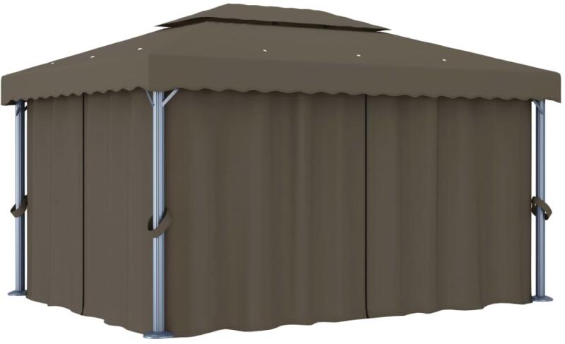 vidaXL tópszínű alumíniumpavilon függönnyel 4 x 3 m