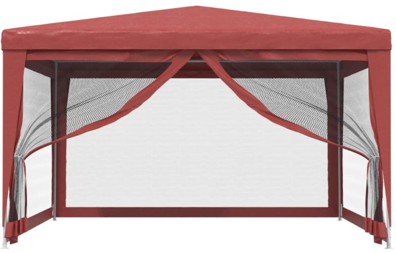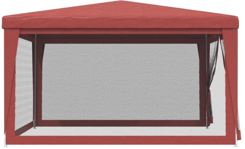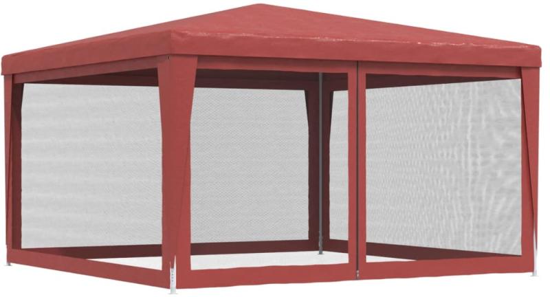 Ez a nagy teherbírású vasvázzal, vízálló tetővel és négy hálós oldalfallal rendelkező, rendkívül menő rendezvénysátor ideális menedéket nyújt a nap ellen. Prémium minőségű anyag: Ez a pavilon nagy sűrűségű polietilénből (HDPE) készült, amely megvéd a közvetlen napfénytől és elegendő szelet enged át. A HDPE speciálisan kezelt anyag, így vízálló is. Vasváz: A pavilon vasváza erős szerkezetet és stabilitást biztosít. Praktikus kialakítás: A sátor négy hálós oldalfallal rendelkezik, amelyek védelmet nyújtanak a bosszantó rovarok ellen. Az egyik oldalfalon pedig cipzár található az egyszerű bejutás érdekében. Széleskörű felhasználás: Ez a rendezvénysátor ideális választás szabadtéri események széles skálájához, például bemutatókhoz, esküvőkhöz, kerti partikhoz, grillezéshez, fesztiválokhoz stb. Megjegyzés:Ezt a terméket SOHA nem szabad rossz időben, például erős szélben, heves esőzésben, hóban, viharban stb. használni. Az egyszerű összeszerelés érdekében minden termékhez mellékelünk összeszerelési útmutatót. Színe: pirosAnyaga: bevonattal ellátott HDPE (nagy sűrűségű polietilén), porszórt vasMérete: 396 x 398 x 266 cm (Ho x Szé x Ma)Eresz magassága a talajtól: 2 mUV-állóVízlepergető4 hálós oldalfal, az egyiken cipzáras bejárattalA csomag tartalma:1 db sátor1 db kötél8 db cövek Színe: pirosAnyaga: bevonattal ellátott HDPE (nagy sűrűségű polietilén), porszórt vasMérete: 396 x 398 x 266 cm (Ho x Szé x Ma)Eresz magassága a talajtól: 2 mUV-állóVízlepergető4 hálós oldalfal, az egyiken cipzáras bejárattalA csomag tartalma:1 db sátor1 db kötél8 db cövek