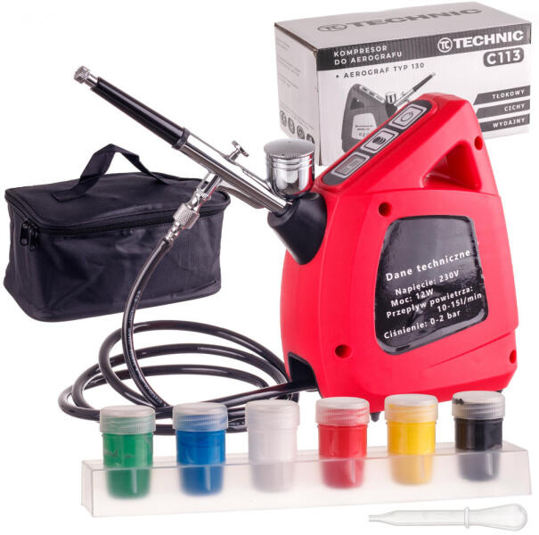 TC Technic Komplett airbrush készlet kompresszorral, festékszóróval és festékekkel TC Technic - C113