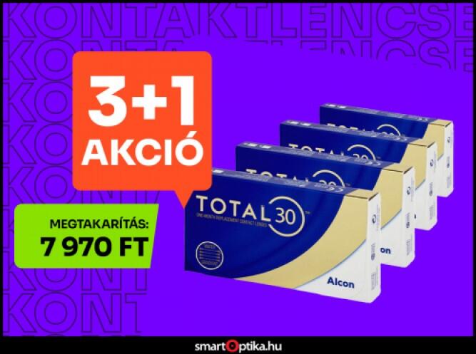 4 db-os csomagakció! Verhetetlen áron, a készlet erejéig. A Total 30 az első havi csereritmusú hidrográdiens kontaktlencse, amely áttörő technológiájának köszönhetően új korszakot nyit a havi kontaktlencsék világában. Víztartalma a lencse magjában 55%, a felszínen pedig elérheti az akár 100%-ot is. Kimagasló (156 Dk/t) oxigénáteresztő képességgel rendelkezik, az alkalmazott Celligent technológia pedig akár 90%-kal kevesebb baktérium és lipid megtapadást eredményez a lencse felszínén, így rendkívül kényelmes és egészséges viseletet biztosít. A Total 30 speciális, a szemfelszínt utánzó felületi struktúrájának köszönhetően a könnyfilm felszakadási idő akár 40%-kal hosszabb, mint a korábbi Air Optix kontaktlencséknél, ennek köszönhetően monitoros munkavégzés során, a kevesebb pislogás miatti kontaktlencse száradás okozta panaszok nagymértékben enyhülnek. Az UVA sugárzás 90, az UVB sugárzás 99%-át elnyelik így biztosítva magasfokú védelmet a szaruhártya, a szemlencse és a szem belső szövetei számára (az UV szűrős