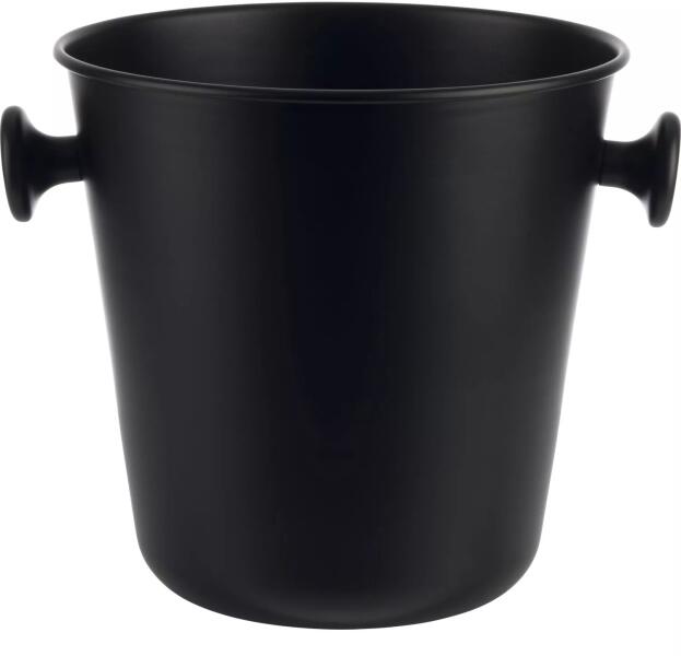 Fekete matt APS bor- és pezsgőhűtő, 5 liter űrtartalommal. Két füllel és extra erős, visszahajtott peremmel rendelkezik. Alumíniumból készült. Az állvány nem része a csomagolásnak. Ideális a hűtött bor és pezsgő bulikon és ünnepségeken történő hidegen tartására. Az APS a minőségi konyhai eszközök vezető gyártója.