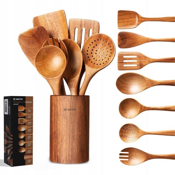 BOTC 8 az 1-ben Konyhai Eszköz Készlet Fa Nyéllel Fa Kanál, Lapát (B08)ALLEGRO