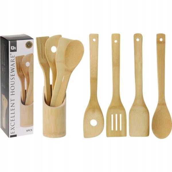 Excellent Houseware Konyhai eszközök állványon 5 db bambuszból készült készletben (8711295744891)ALLEGRO