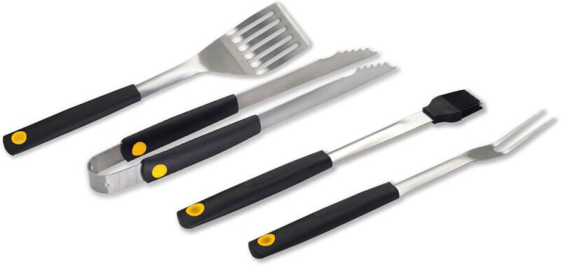 FZG 9015 Grillező szerszámok 4 db FIELDMANN-tólA neves FIELDMANN márka négyrészes FZG 9015 grillszerszámkészlete ideális segítője a grillezés szerelmeseinek. Mit tartalmaz a készlet?Spatula - tökéletes a forgatáshoz és tálaláshozVilla - a hús átviteléhez elengedhetetlenFogó - kiválóan alkalmas kisebb húsdarabok vagy zöldségek kezeléséhezEcset - ideális pácok és szószok felviteléreTartós anyagokAz edények tartós rozsdamentes acélból készülnek, ami hosszú élettartamot garantál. A fogantyúk műanyagból készültek a kényelmes és biztonságos fogás érdekében. Miért válassza a mi termékünket?A FIELDMANN FZG 9015 Grillező szerszámok 4 db a minőség, a funkcionalitás és a design tökéletes kombinációját képviselik. Élvezze maximálisan a grillezést!
