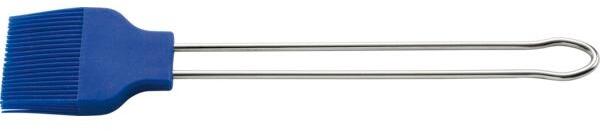 Kék szilikon sütőecset Weis XL, 33 cm hosszú, rozsdamentes acél nyéllel. Könnyen tisztítható, és ideális ételek szószokkal, olajjal vagy pácokkal való megkenéséhez. Minden konyhába alkalmas.