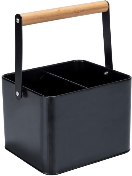 A Black Outdoor Kitchen kollekció a Wenkótól éppen időben érkezik a közelgő grillszezonra. Olyan termékeket találsz, amelyek megkönnyítik az ételkészítést és a tárolást. Ezek közé tartozik ez a porszórt fém, fa és polipropilén kombinációjából készült konyhai eszköztartó. A robusztus fogantyúnak köszönhetően tökéletes a szószok vagy más fűszerek szállítására .