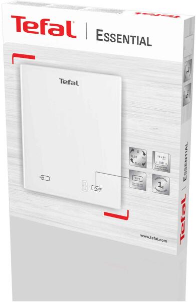 Tefal Essential BC5504V0 konyhai mérleg, 5 kg, Edzett üveg, Tára funkció, Folyadékmérési funkció, 1 g pontosság, Automatikus kikapcsolás, 2 db elem mellékelve, Fehér (BC5504V0)