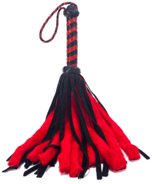 Bőr korbács piros szörmével Mini flogger 46 cm