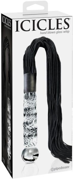 Elegáns, előkelő és kézzel készített korbács, hipallergénbór-szilikát üvegnyéllel, puha, bőr szálakkal.   A nagy teherbírású, súlyozott üvegnyél kézzelfújt, és akár hüvelyi vagy anális behatolásra használható. A termék nemporózus, lehűthető és melegíthető is. Tisztítása: minden használat előtt és minden használat utánlangyos szappanos vízzel és segédeszköz tisztítóval kell lemosni. Vízbázisúsíkosító javasolt.