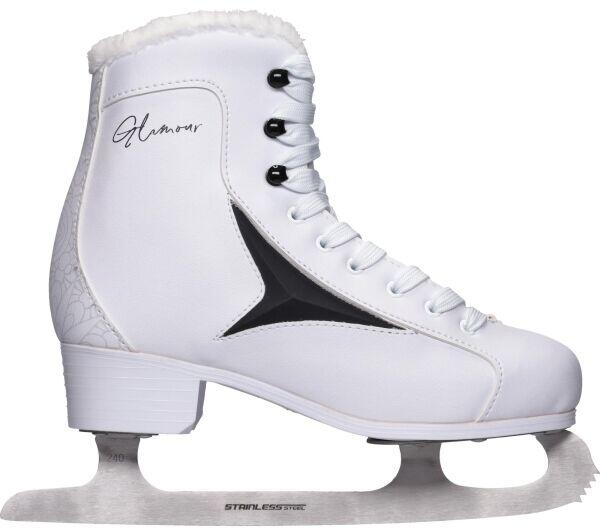Arcore GLAMOUR női műkorcsolya rekreációs korcsolyázásra. Szép, stílusos dizájnja magára vonja a figyelmet. Külső anyaga szintetikus bőr, ami tartós és könnyen tisztítható. A boka párnázottsága és a belső meleg műszőrme kifogástalan kényelmet és remek élményt kínálnak a jégen.