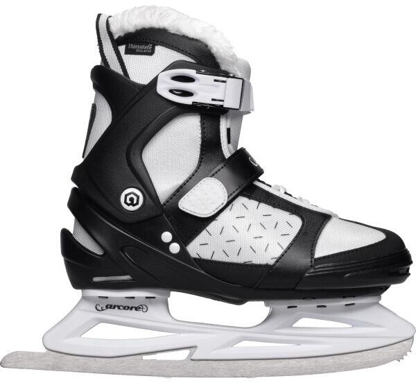 Az Arcore MISU női korcsolya ideális választás szabadidős korcsolyázáshoz, ahol fontos a kényelem, a stabilitás és a modern megjelenés. Két részből álló csuklós vázszerkezet biztosítja az egyensúlyt a stabilitás és a szabad mozgás között. A láb megbízható rögzítéséről két csat, egy finoman állítható csat, valamint egy tépőzáras rüsztpánt gondoskodik, így a korcsolya tökéletesen tart és biztos illeszkedést nyújt. A rozsdamentes acél pengékkel ellátott kések biztos, folyamatos mozgást biztosítanak a jégen. A bokarésznél gazdagon párnázott belső cipő, valamint a cipőorrban található Thinsulate bélés gondoskodnak róla, hogy a lábad meleg és száraz maradjon még a hosszabb korcsolyázások alkalmával is. A stílusos dizájn finom szőrmével kiegészítve elegáns megjelenést ad a korcsolyának, amivel garantáltan kitűnsz majd minden jégpályán.