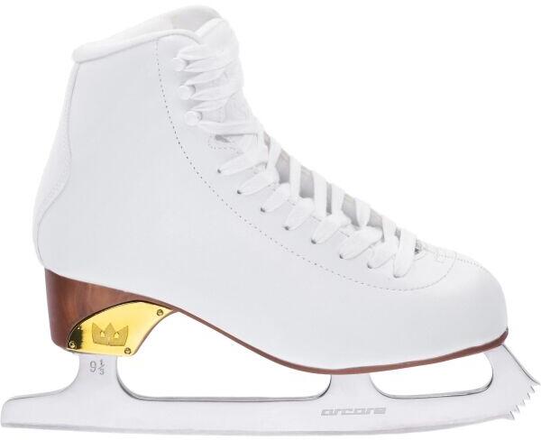 A QUEEN női jégkorcsolya modell az Arcore csúcsmodellje. Kifejezetten aktív műkorcsolyázóknak készült, akik magas minőséget és kivételes, mégis klasszikus megjelenést keresnek. Ellenálló külső részét könnyített talp egészíti ki, aranyozott dizájnelemekkel díszített, valamint polírozott, rozsdamentes acél penge biztosít precíz siklást. A megerősített oldalsó támasz jobb erőátvitelt és stabil irányítást biztosít, míg az anatómiailag formázott nyelv gondoskodik a láb kényelmes és biztonságos rögzítéséről.